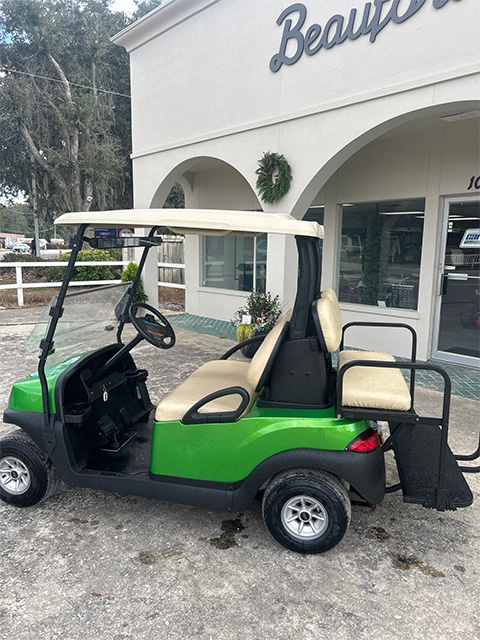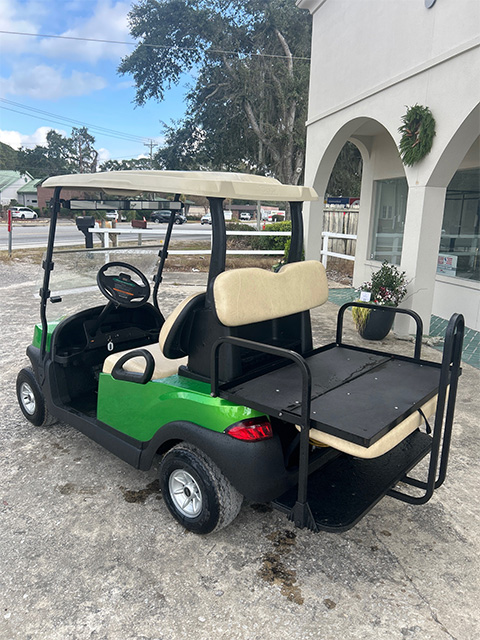 Features: New lead acid batteries installed November 20, 2025. New front and rear tempo body conversion in lime green. New rear bushings. Fresh annual maintenance service conducted 11 2025. Deluxe headlights. Five panel rearview mirror. Fold down rear seat with safety bar. 19 mph top speed.