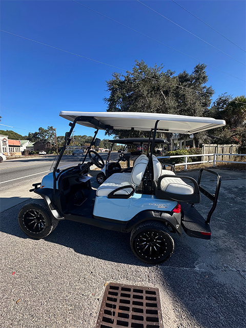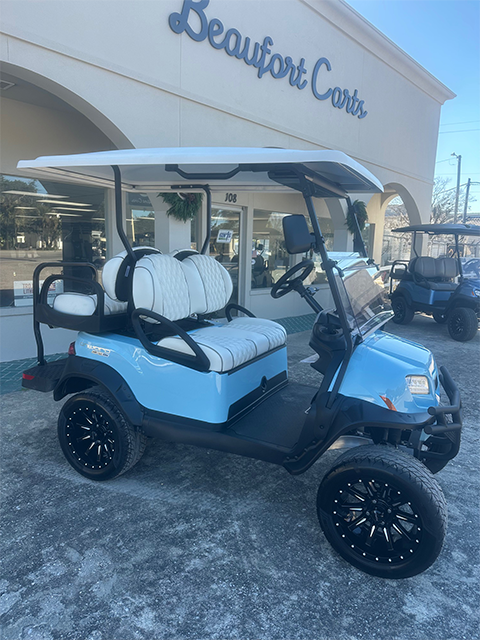 Features: Limited Heritage Blue with premium Camello seats. 7” instrument panel with touch screen. Dual wireless phone chargers. Lockable side storage. Onward premium soundbar. Deluxe lights with signals. Li-ion battery. Side mirrors. Extended canopy.