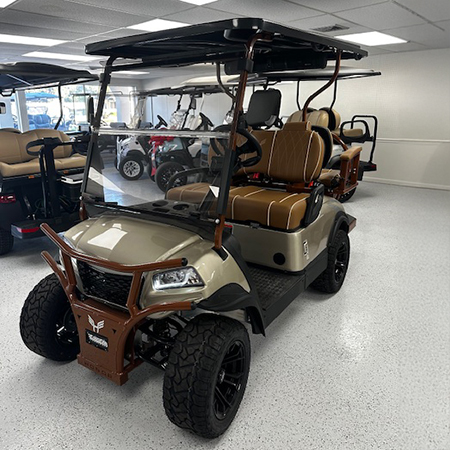 Enjoy a high end experience in a late model, upgraded cart that includes premium seats and wheels as well as a Bluetooth soundbar. Our fleet of electric carts are available for daily rentals with a 3-day minimum. The weekly rate of $590 per week will be automatically applied for rentals with a duration of 5 days or longer. Cart color may vary based on availability. While multiple colors may be offered, specific color requests cannot be guaranteed.
